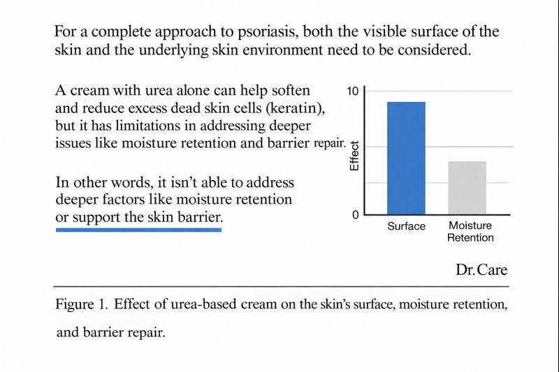 건선 관리 방법을 찾아보다 보면 빠지지 않고 등장하는 성분이 바로 우레아다. 우레아는 피부 보습과 각질을 부드럽게 만드는 데 도움을 주는 천연 보습인자(NMF) 중 하나다. 주로 건조하고 거친 피부, 각질이 두껍게 쌓인 부위를 관리하는 데 사용되며, 건선 피부 역시 각질이 제대로 떨어지지 않고 수분이 부족해지는 것이 핵심 문제이기 때문에 우레아는 건선 관리에서 빼놓을 수 없는 기본이 되는 성분이다. 우레아가 피부에 닿으면 피부 안팎의 수분을 끌어당겨 굳어 있던 각질을 부드럽게 만들고, 각질 세포 사이 결합을 느슨하게 해 각질이 자연스럽게 떨어질 수 있는 환경을 만들어준다. 그렇다면, 우레아 성분이 들어있는 화장품을 아무거나 사용하면 건선에 무조건 도움이 되는걸까? 절대 아니다. 우레아 성분이 각질제거에 도움이 되는 것은 맞지만 함량이 중요하다. 잘모르는 사람들은 약국에 가서 건선피부 개선에 좋다해서 '유리아 크림' 을 구매한다. 유리아 크림은 우레아 함량이 200,000ppm 이상으로 주로 각질이 두터운 발 뒤꿈치쪽에 바르는 제품이다. 이 제품을 몸에 바르거나 얼굴에 바른다면 심각한 부작용을 초래할 수 있다. 각질을 적정수준 이상으로 모두 녹여버려서 따가움과 자극감이 생길 수 있으며 발진과 홍반이 생길수도 있다. 건선피부 개선에 도움이 되는 화장품은 우레아 성분이 100,000ppm(10%)가 넘지 않는게 좋다. 매일 꾸준히 관리하면서 부작용없이 효과를 보고 싶다면 우레아 함량은 9%가 가장 적절한 수치다. 우레아 8% 이하는 과각질 상태에서는 효과가 미미할 수 있고, 우레아 10% 이상은 따가움, 붉어짐등의 부작용이 있을 수 있다. 임상시험 결과도 말해주고 있다. 우레아 9%가 각질 케어 효과와 저자극 사이 가장 이상적인 균형으로 확인됐다. 고작 1% 차이라고 할 수 있지만 카페인도 1% 차이로 수면을 망치듯 우레아도 1%가 피부에는 ‘극적인’ 차이다. 몇몇 업체들은 화장품의 원가율을 줄이기 위해 우레아 함량을 적게 넣고, 건선피부 개선에 효과가 좋다고 과대광고를 하며 이를 믿고 구매한 고객들은 효과를 전혀 보지 못하고 피해만 보고있다. 참 할말이 없다.